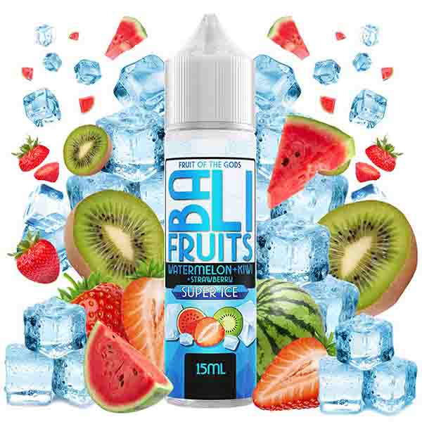 Sabor: Sandía, kiwi, fresa, super ice (hielo extremo). Formato: 15ml de aroma en una botella de 60ml, diseñada para mezclar con tu base de PG/VG y nicokits si lo deseas, hasta alcanzar los 60ml de líquido final. Fabricado por: Bali. Colección: Super Ice.
